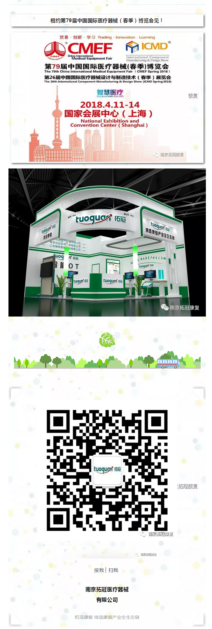 | 上一篇:南京康復(fù)醫(yī)學(xué)會(huì)第二屆會(huì)員代表大會(huì)暨2018年南京康復(fù)醫(yī)學(xué)學(xué)術(shù)會(huì)議圓滿落幕 下一篇:【精彩回顧】第79屆中國(guó)國(guó)際醫(yī)療器械(春季)博覽會(huì)圓滿落幕,回顧拓冠精彩瞬間 |