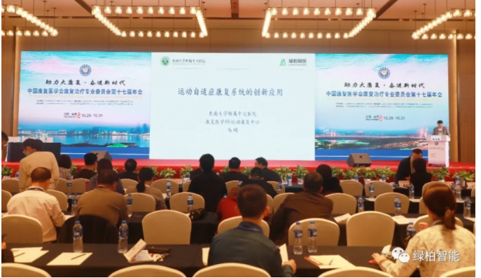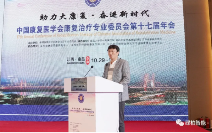 10月30日上午,在大會開幕式和主旨報告結束后,江蘇綠柏公司在主會場國際A+B廳隆重召開了2020綠柏新品發布會《顛覆·制造》。作為本次發布會的特邀嘉賓,東南大學附屬中大醫院馬明教授向大家介紹了綠柏的新品“步行反饋自適應康復系統”。