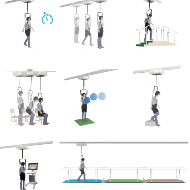步行反饋自適應康系統具有智能跟隨、上下臺階、動態平衡等六種訓練模式,滿足患者的多種日常情景訓練,提高患者本體感覺輸入,實現真正獨立步行能力的恢復。