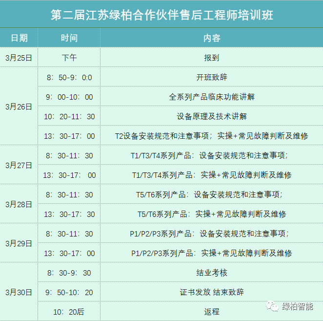第二屆江蘇綠柏合作伙伴售后工程師培訓班即將開班啦!