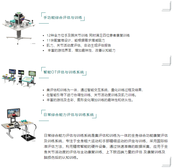 江蘇綠柏智能科技有限公司專注于智能康復設備研發、制造,公司已推出智能手功能系列、智能OT系列、數字OT系列、反應時情景互動系列、日常綜合系列、職業(工傷)康復系列、懸吊系列以及智能天軌等8大系列40余款產品,獲得30多項國家專利及軟件著作權,智能OT系列和職業(工傷)康復系列等產品填補國內康復設備空白。