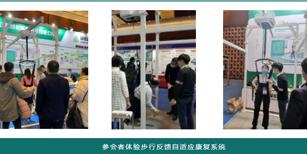 會議過程中,綠柏展位所展出的智能康復設備受到了眾多參會者的關注,尤其是步行反饋自適應康復系統,作為國內唯一一款可實現實時動態減重和防跌倒安全保護的步行訓練系統,其吸引了一眾參會學者和專家前來體驗。